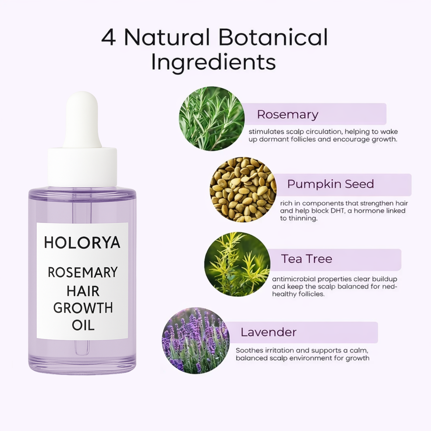 Step 1: Add a few drops of our Holorya Hair Growth oil to the compartment (optional).